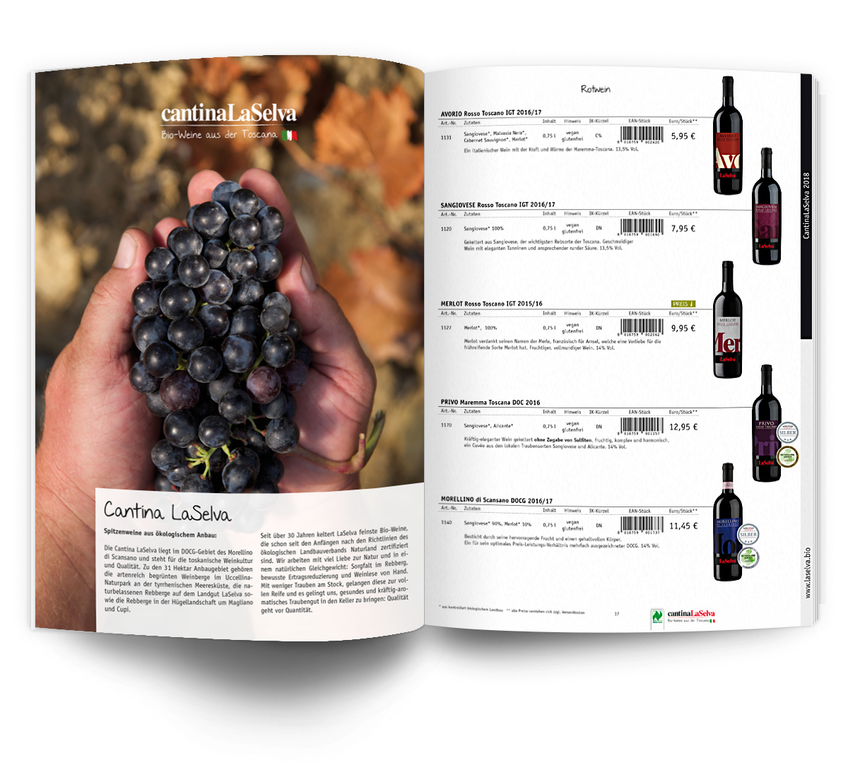 Die Aufgabe war das Re-Design des bisherigen Sortimentkatalogs. Der Katalog sollte grundsätzlich aufgewertet und übersichtlicher gestaltet werden. Eines der Ziele war die Reduzierung des Umfangs um vier Seiten, trotz einer größeren Anzahl an Produkten. Ausserdem war eine klare, optische Trennung der Produkte von LaSelva Biofeinkost und cantina LaSelva gewünscht.